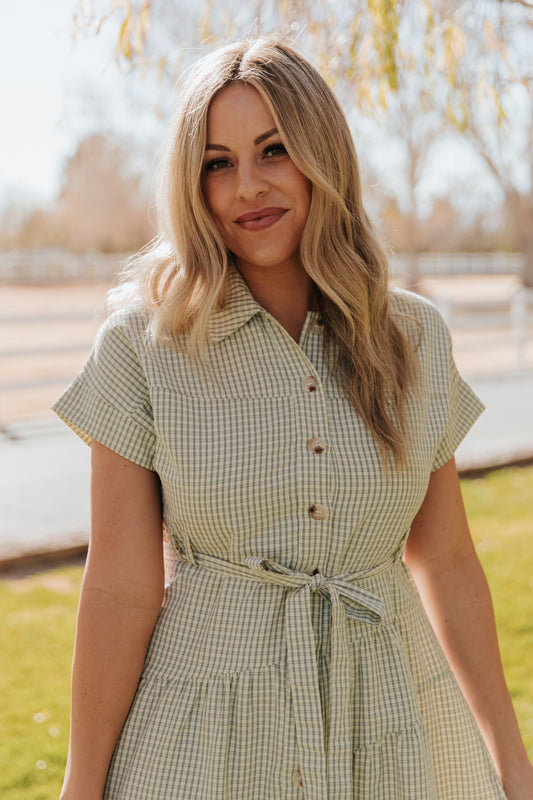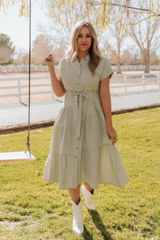 THE EVERMORE DRESS IN NAVY PLAID BY PINK DESERT