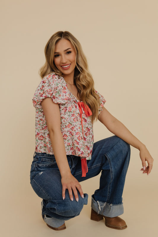 THE JAMIE FLORAL PRINT TOP IN CREAM
