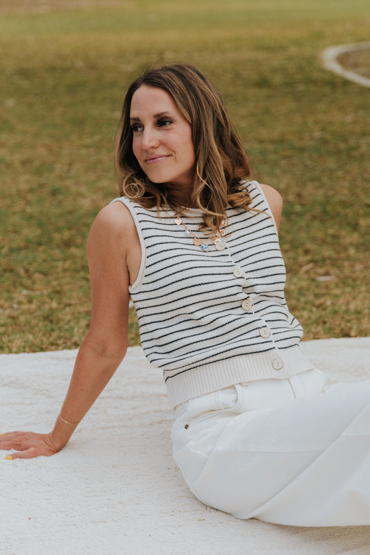 THE AVERY BUTTON DOWN SWEATER IN CREAM