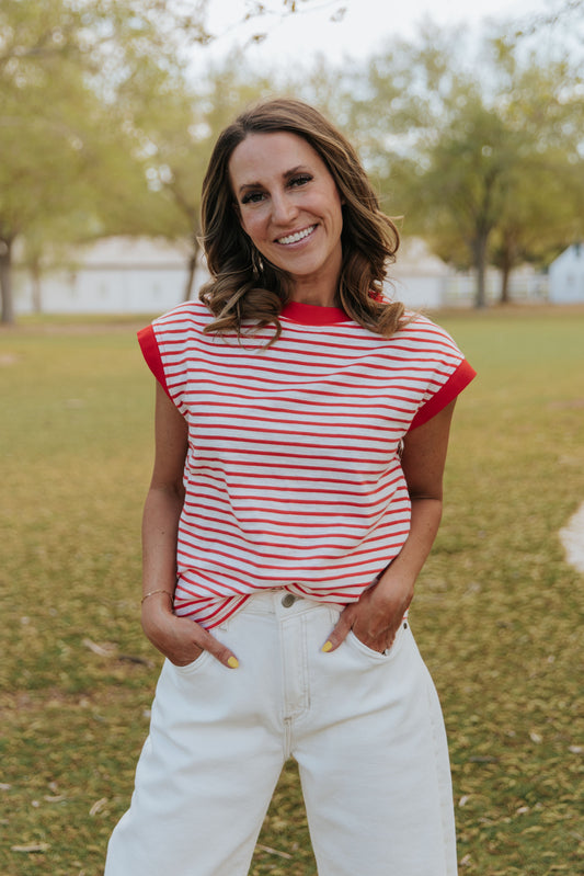 THE ALAINA LACE TRIM BUTTON DOWN IN RED
