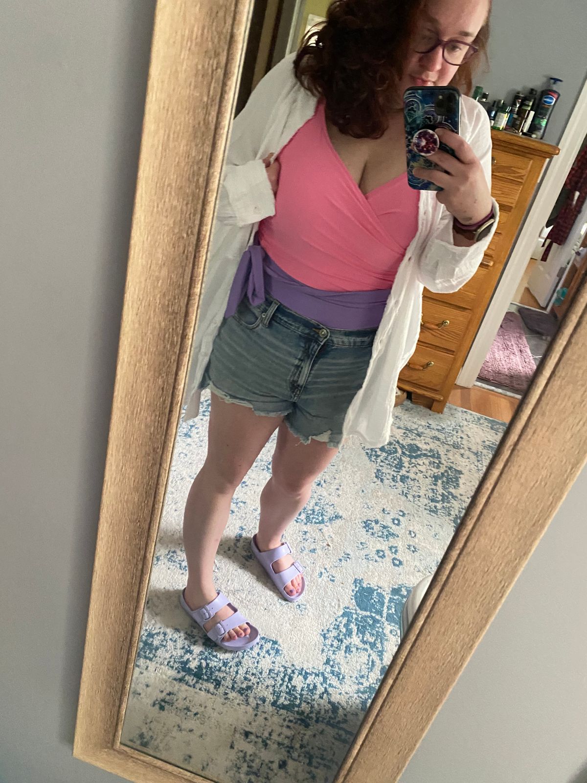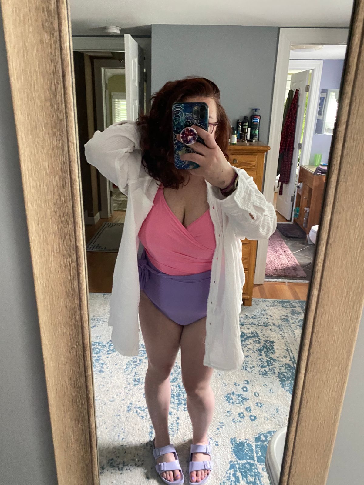 Currently a size 14/16 and 38DD bra size at 6 months postpartum and the XL and it fits perfectly. Definitely feel confident and love the pretty pastel colors! Paired here with aerie cover up and shorts. @sassyredlipstick made me do it!