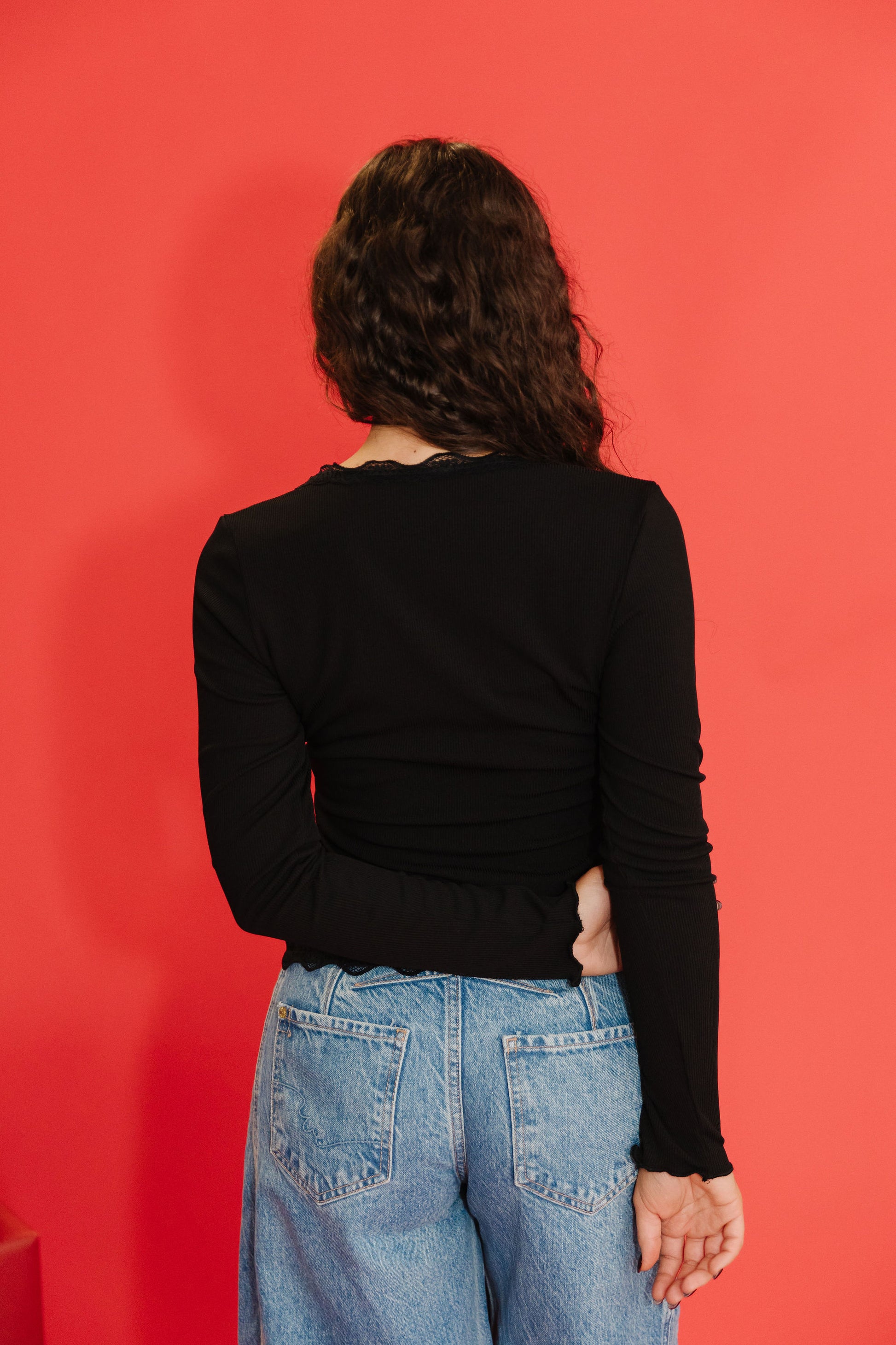 THE ALAINA LACE TRIM BUTTON DOWN IN BLACK