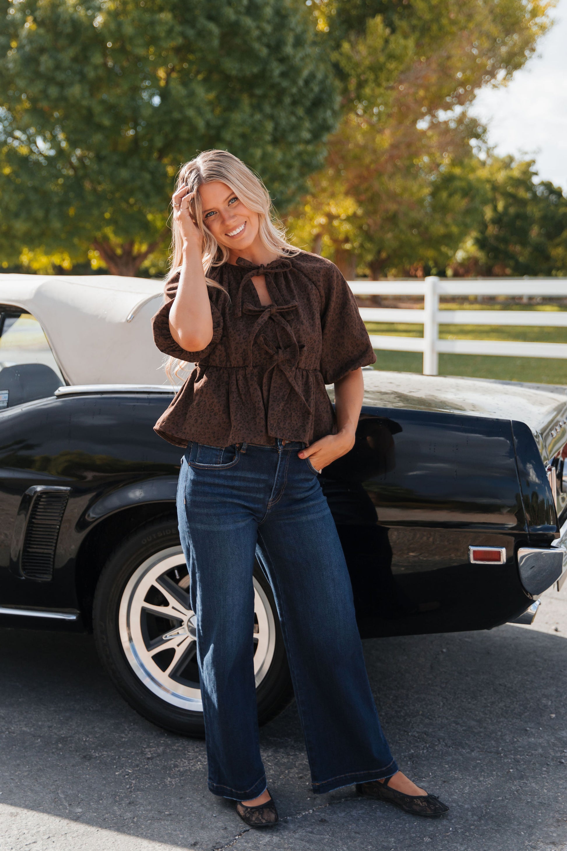 Step out in style with THE BECCA WIDE LEG JEANS IN DARK WASH. These high-rise jeans hug your waist just right, while the wide leg adds a fun, breezy twist to your look. Perfect for turning heads on casual days or dressing up for a night out. Your new favorite jeans await!