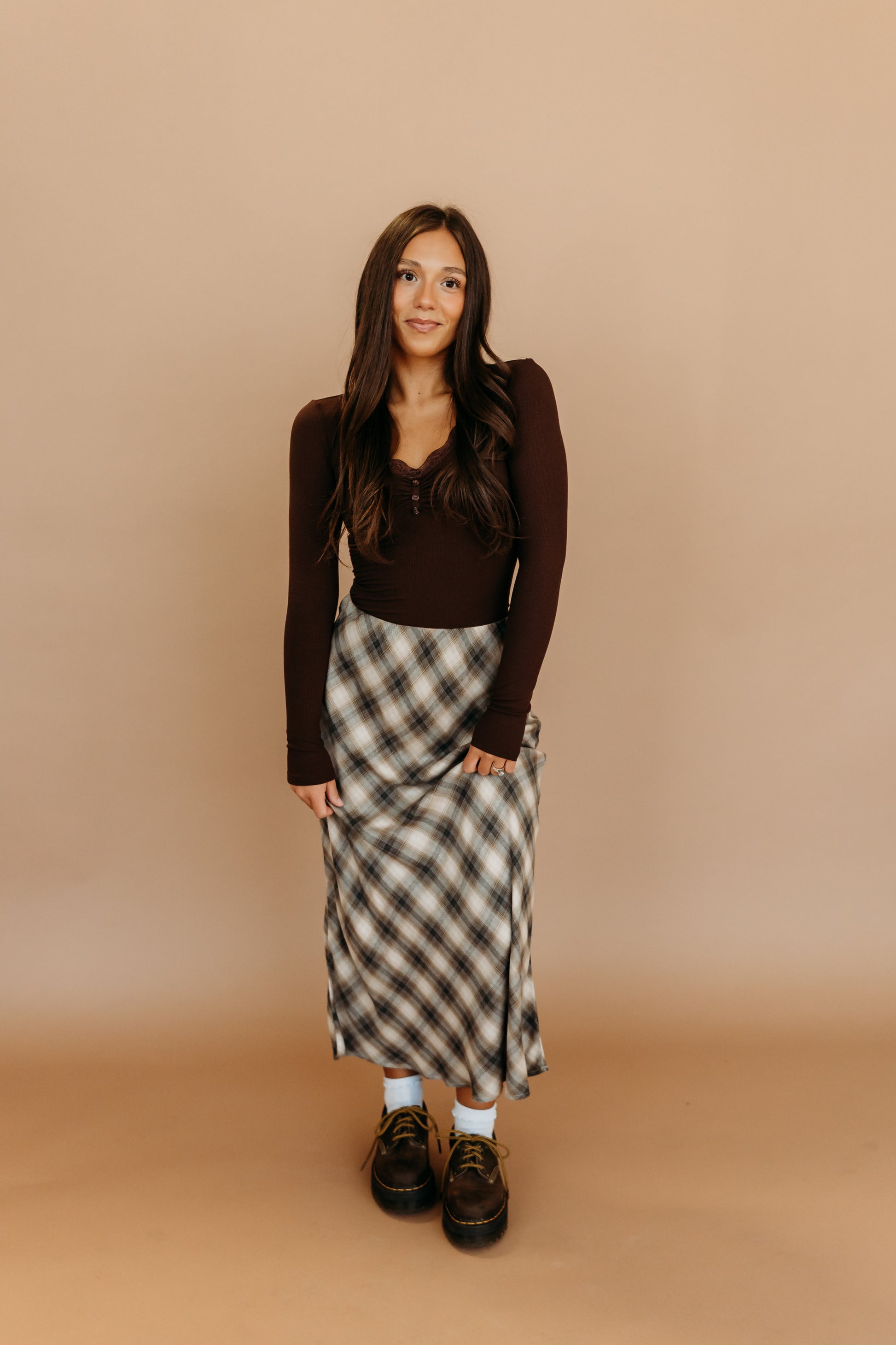 Paired with THE JENNY PLAID SKIRT IN NAVY