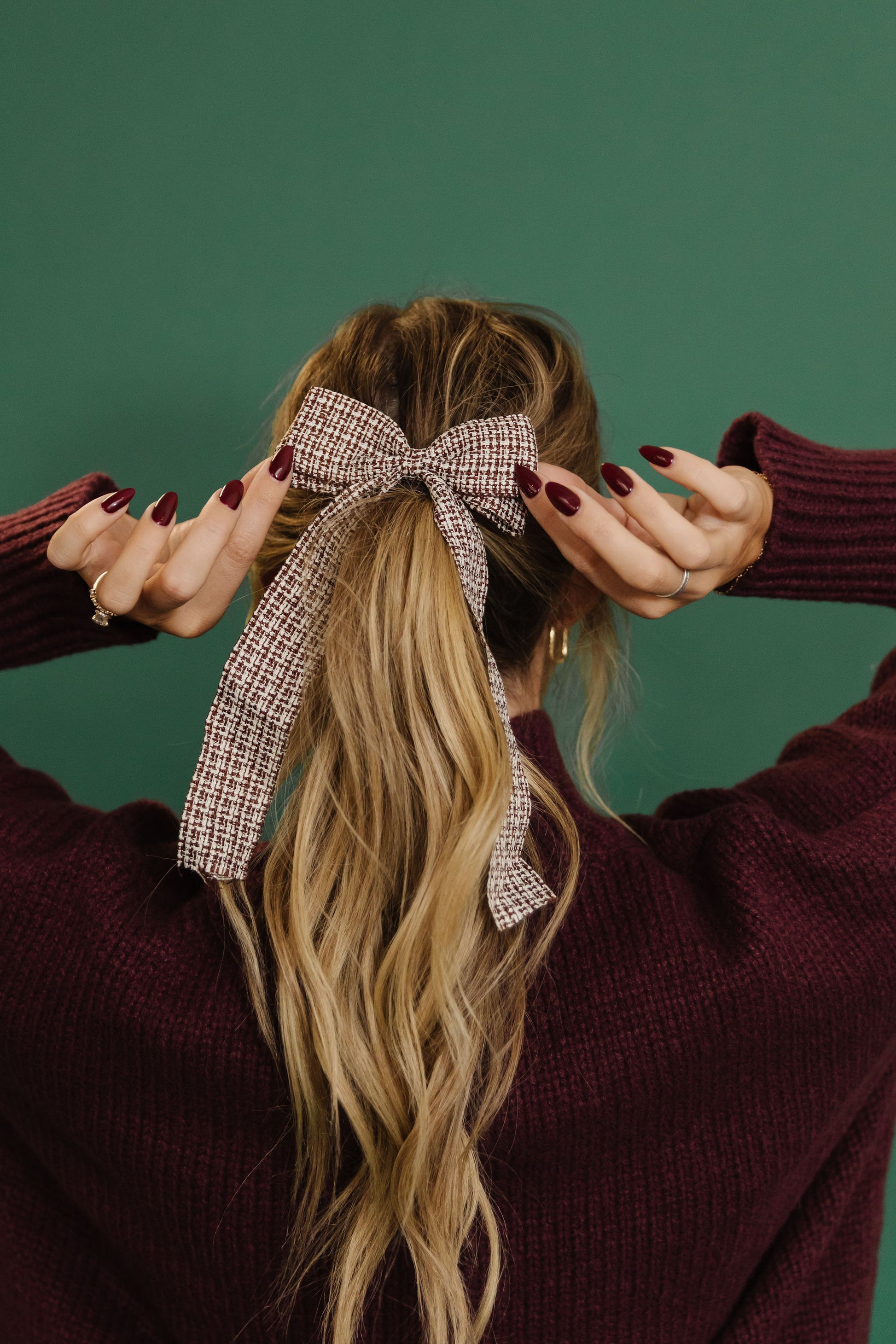 THE CHECKERED DOUBLE LAYER BOW RIBBON CLIP