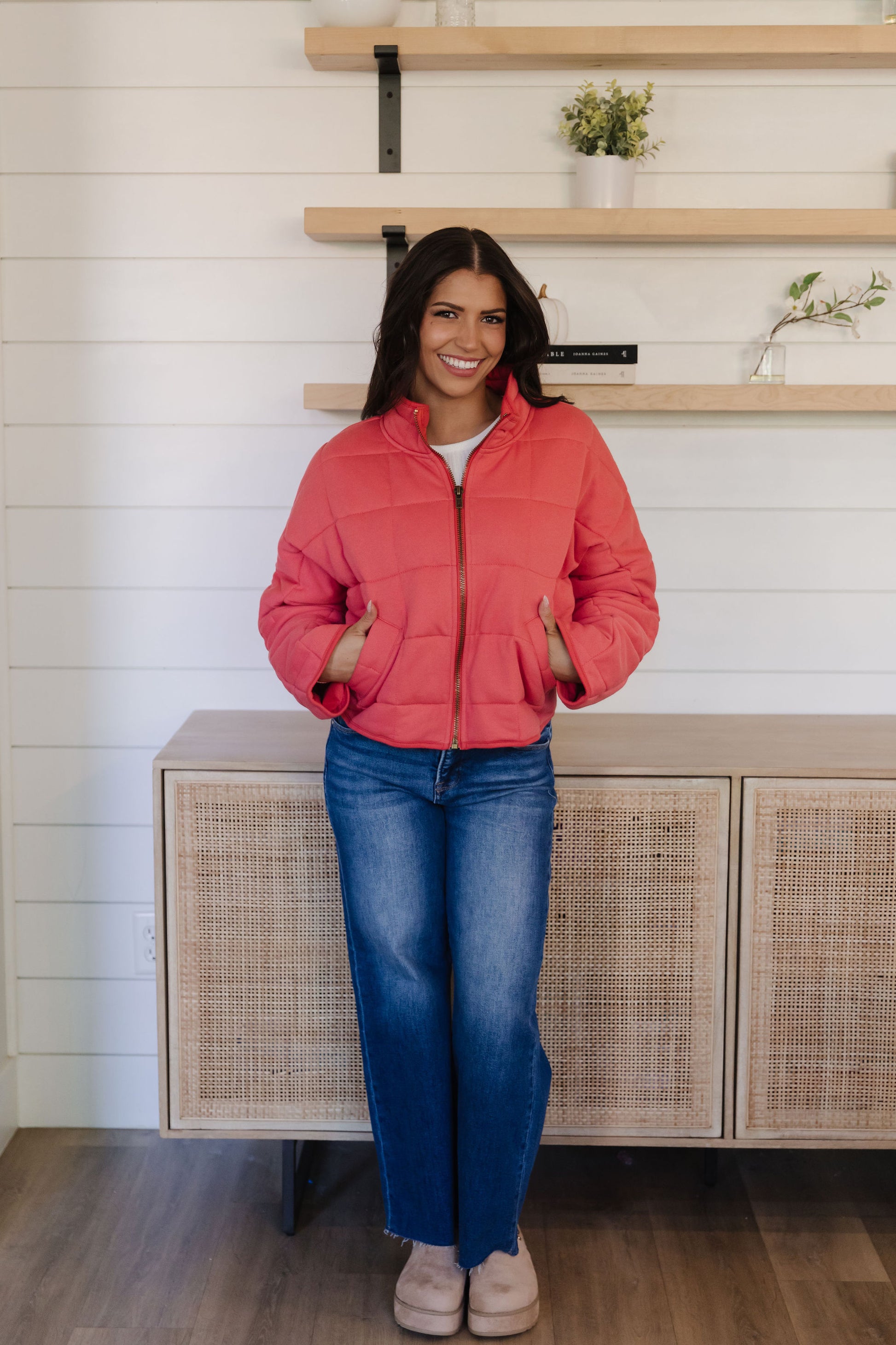 Stay cozy in style with The Clover Puffer Jacket in Cherry—your new favorite layer for chilly days. This quilted puffer delivers serious warmth without the bulk, featuring a vibrant coral hue that brings instant personality to any outfit. Perfect for everything from weekend adventures to casual errands, it's the jacket that keeps you comfortable and looking effortlessly cool.