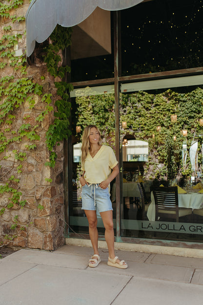 Step into summer fun with the Denice Tie Shorts in medium denim! These comfy, stretchy shorts feature a longer inseam for extra coverage and a playful boho tie detail that adds a flirty twist to your casual look. Perfect for sunny days and carefree vibes.