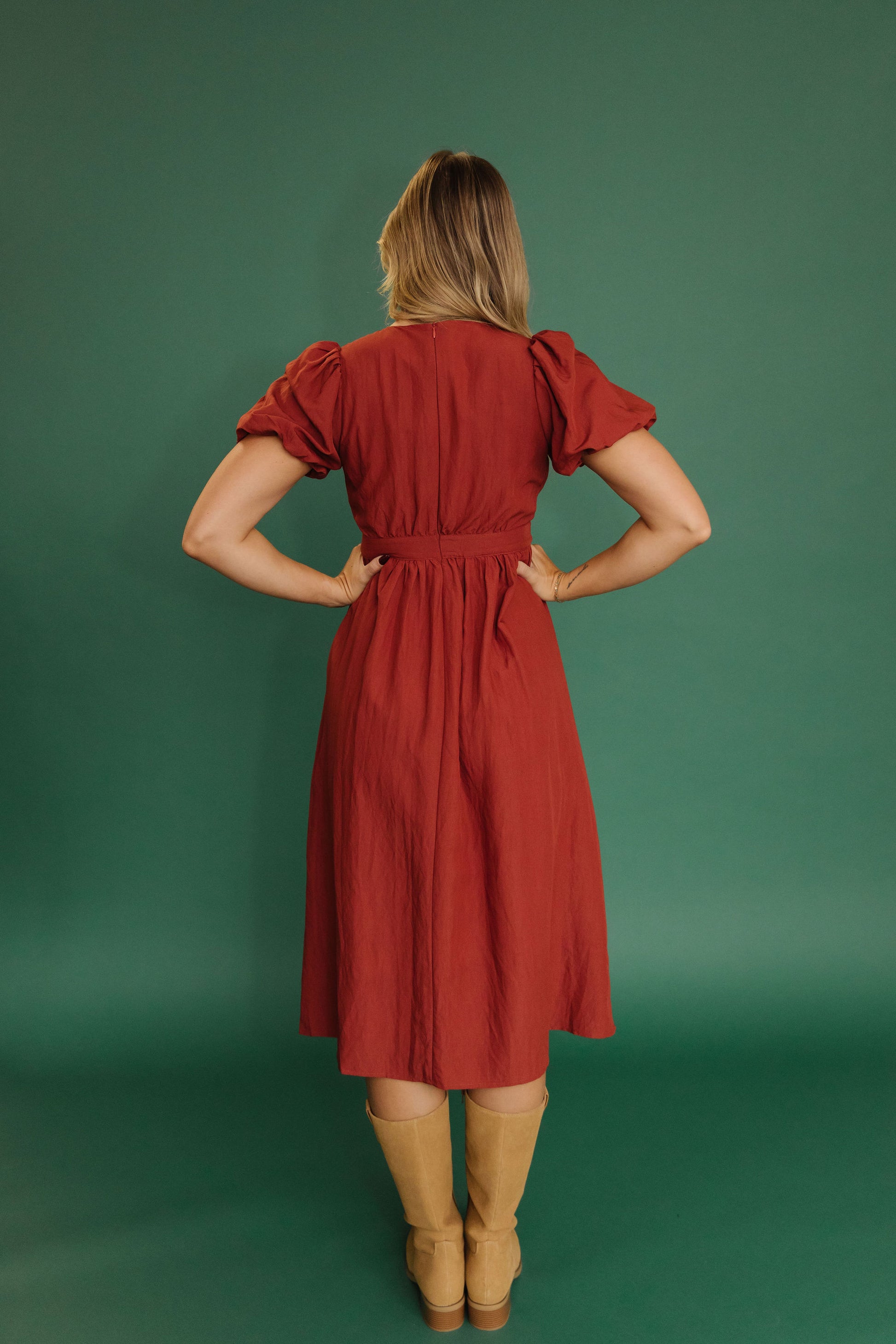THE HAZEL PUFF SLEEVE DRESS IN RUST