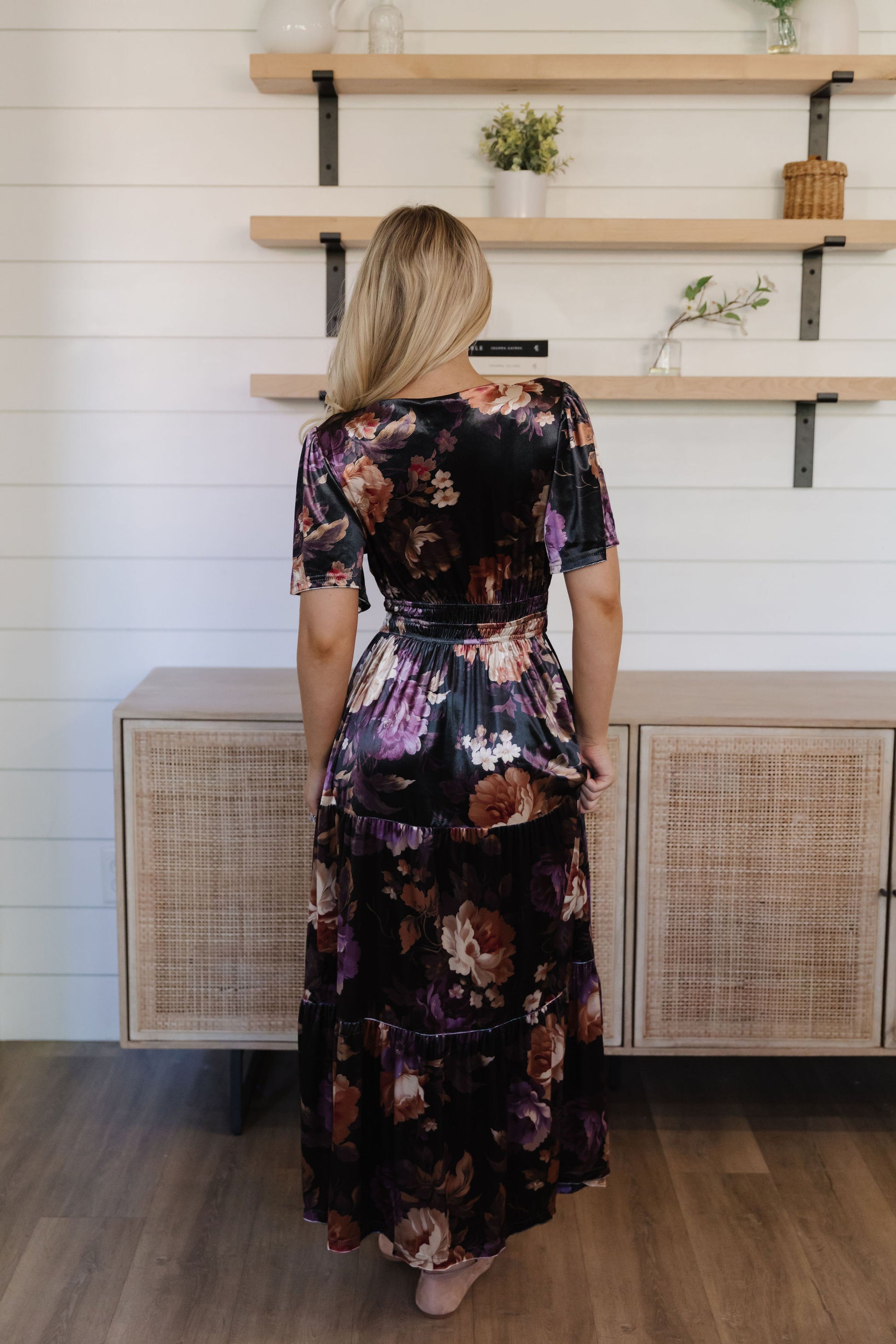 Slip into effortless elegance with The Laura—a flirty tiered velvet dress that's as cozy as it is chic. This short-sleeve stunner features a gorgeous floral print on a black background that dances across sumptuous velvet fabric, creating dimension and movement with every step. The layered silhouette adds playful volume while the soft velvet keeps you wrapped in comfort all day long. Perfect for brunch dates, casual outings, or whenever you want to feel fabulous without trying too hard.