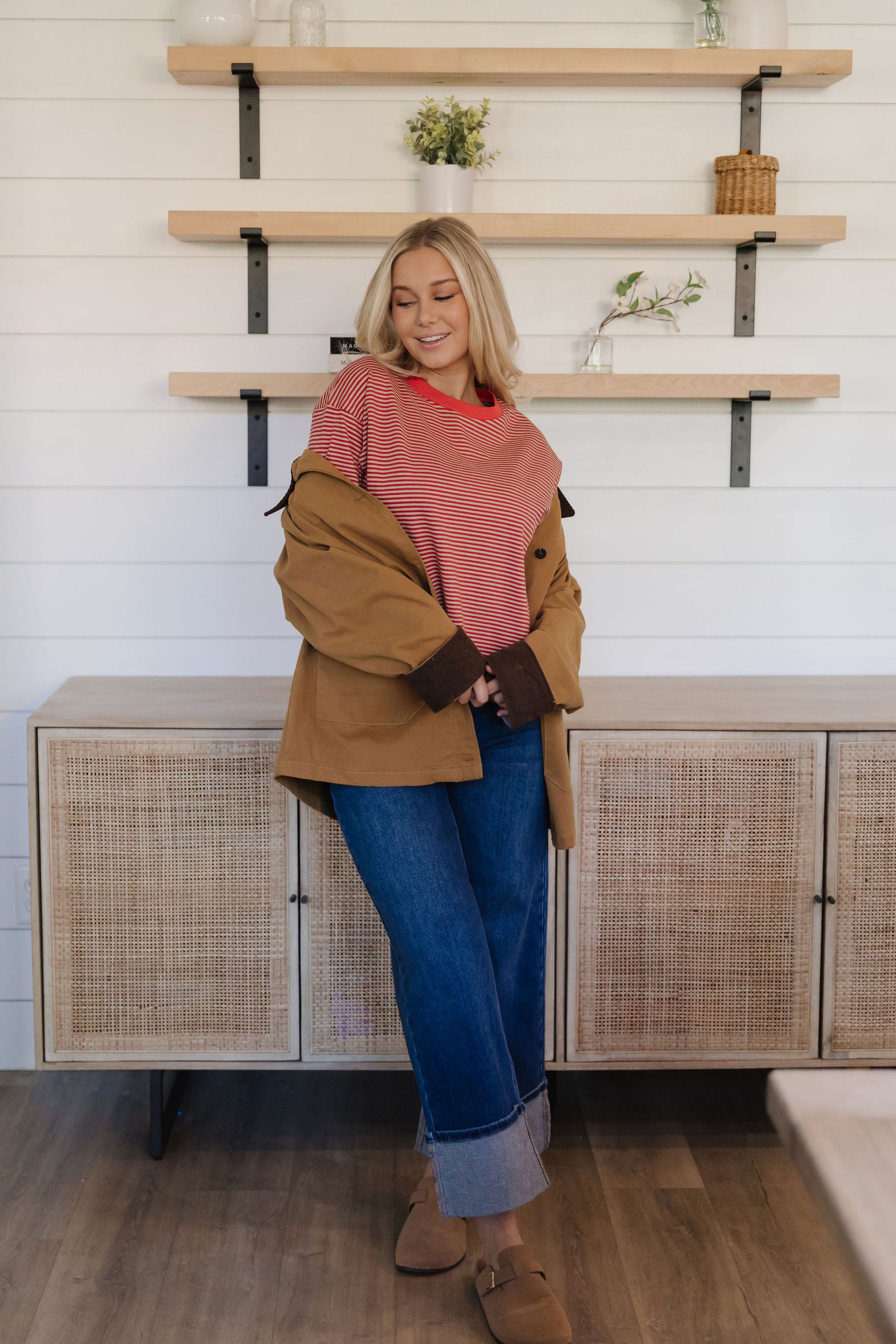 Rock a bold look with The Lillian Stripe Short Sleeve Shirt in Red. This playful striped tee combines comfort with contemporary style, featuring a relaxed fit that's perfect for everyday wear. The vibrant red and stripe pattern adds instant personality to your wardrobe, whether you're dressing up or keeping it casual. Soft, breathable fabric keeps you feeling great all day long. A fun essential that effortlessly elevates your style game.