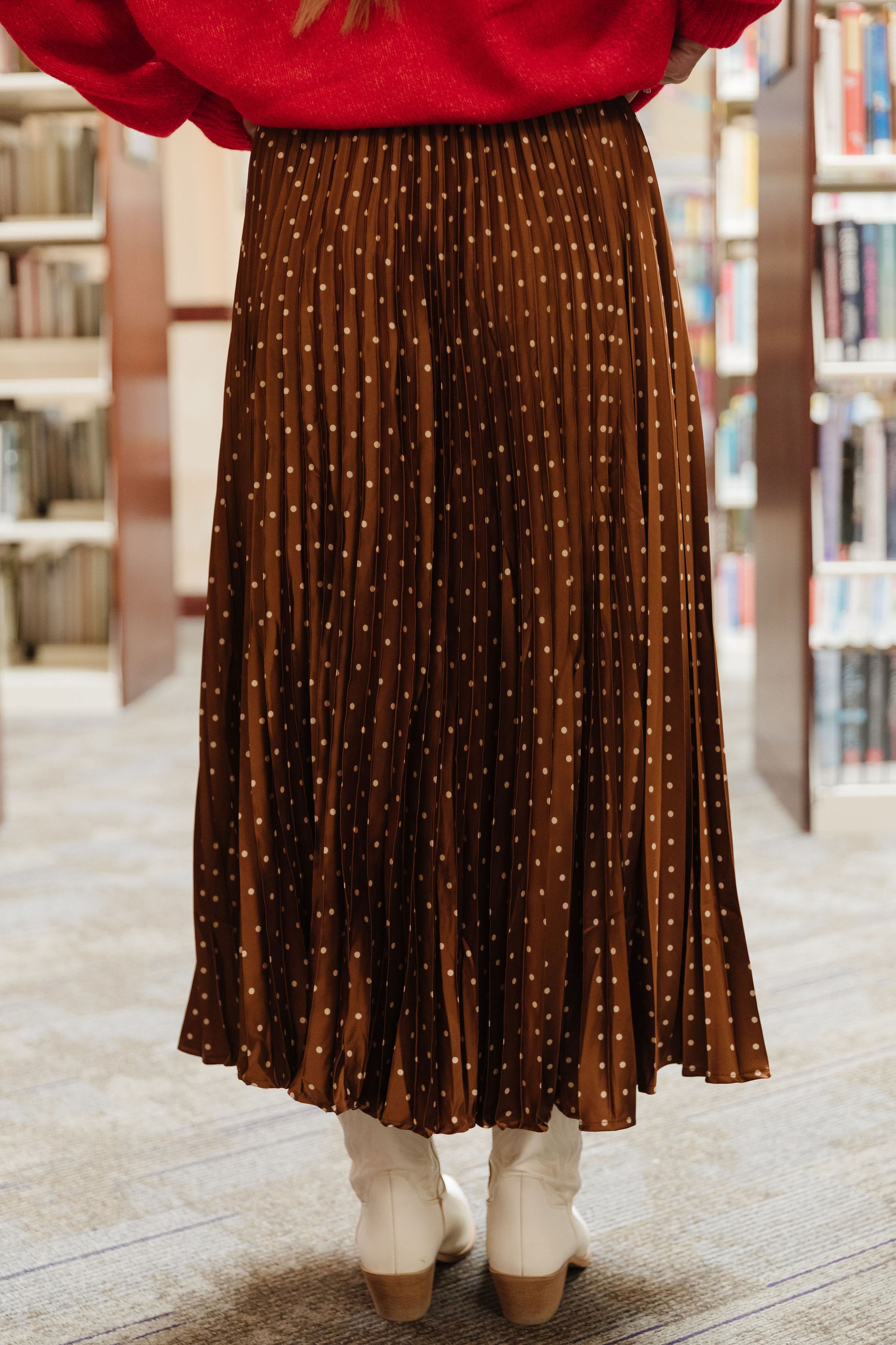 THE MAX PLEATED POLKA DOT SKIRT IN MOCHA