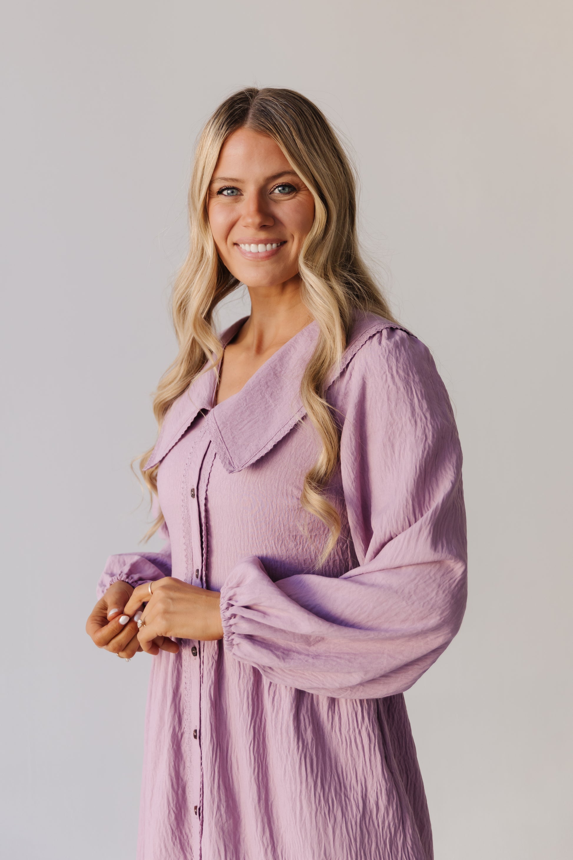 THE NATASHA EYELET TRIM COLLAR DRESS IN MAUVE