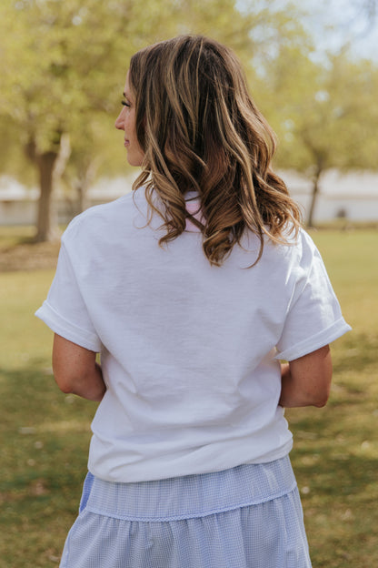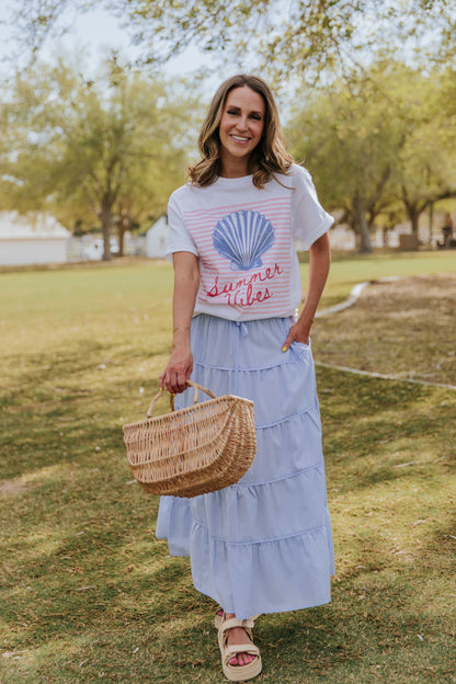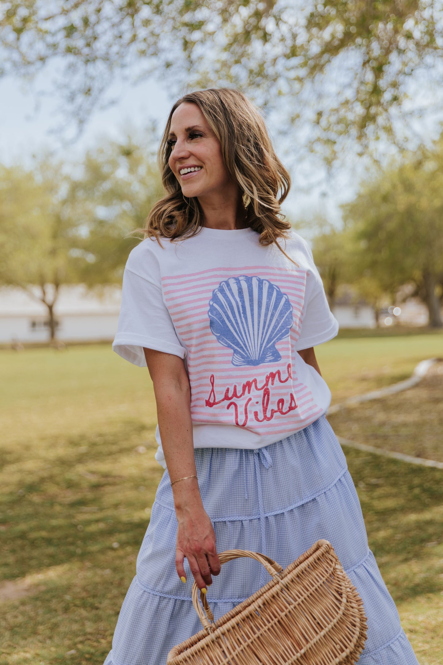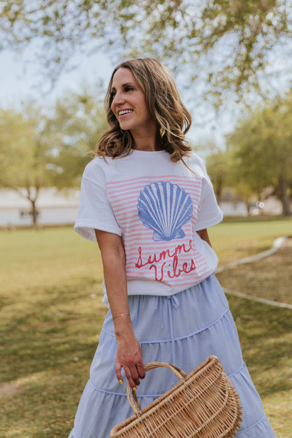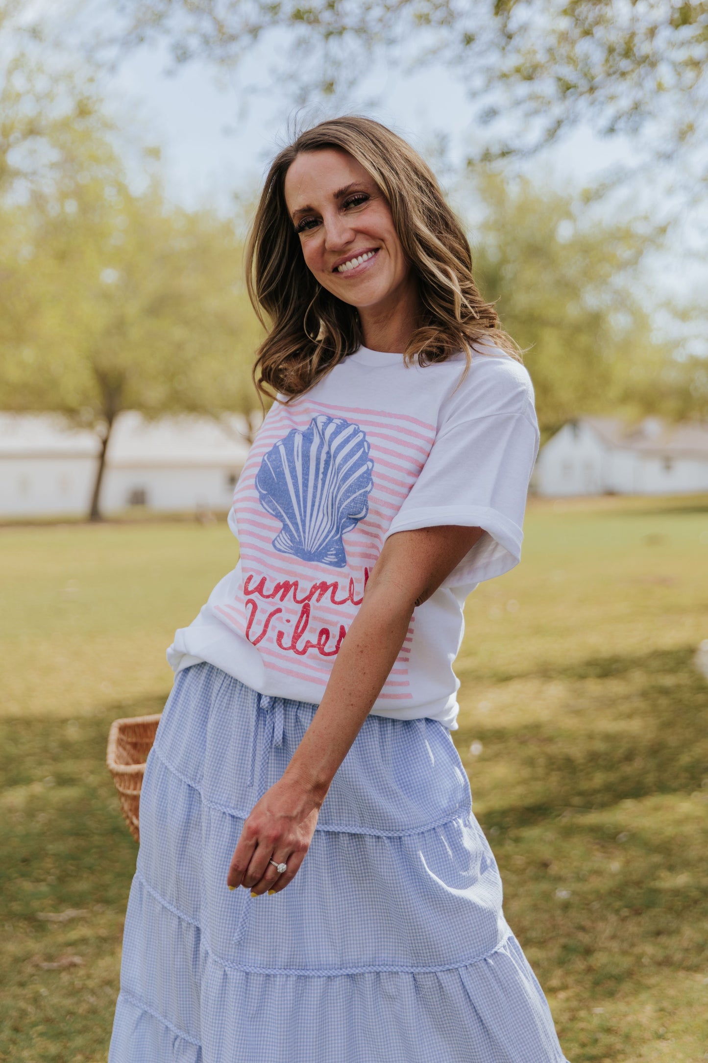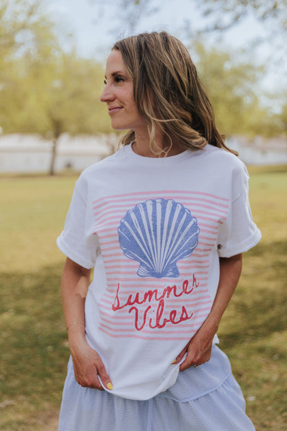 THE SHELLY SUMMER VIBES GRAPHIC TEE IN WHITE