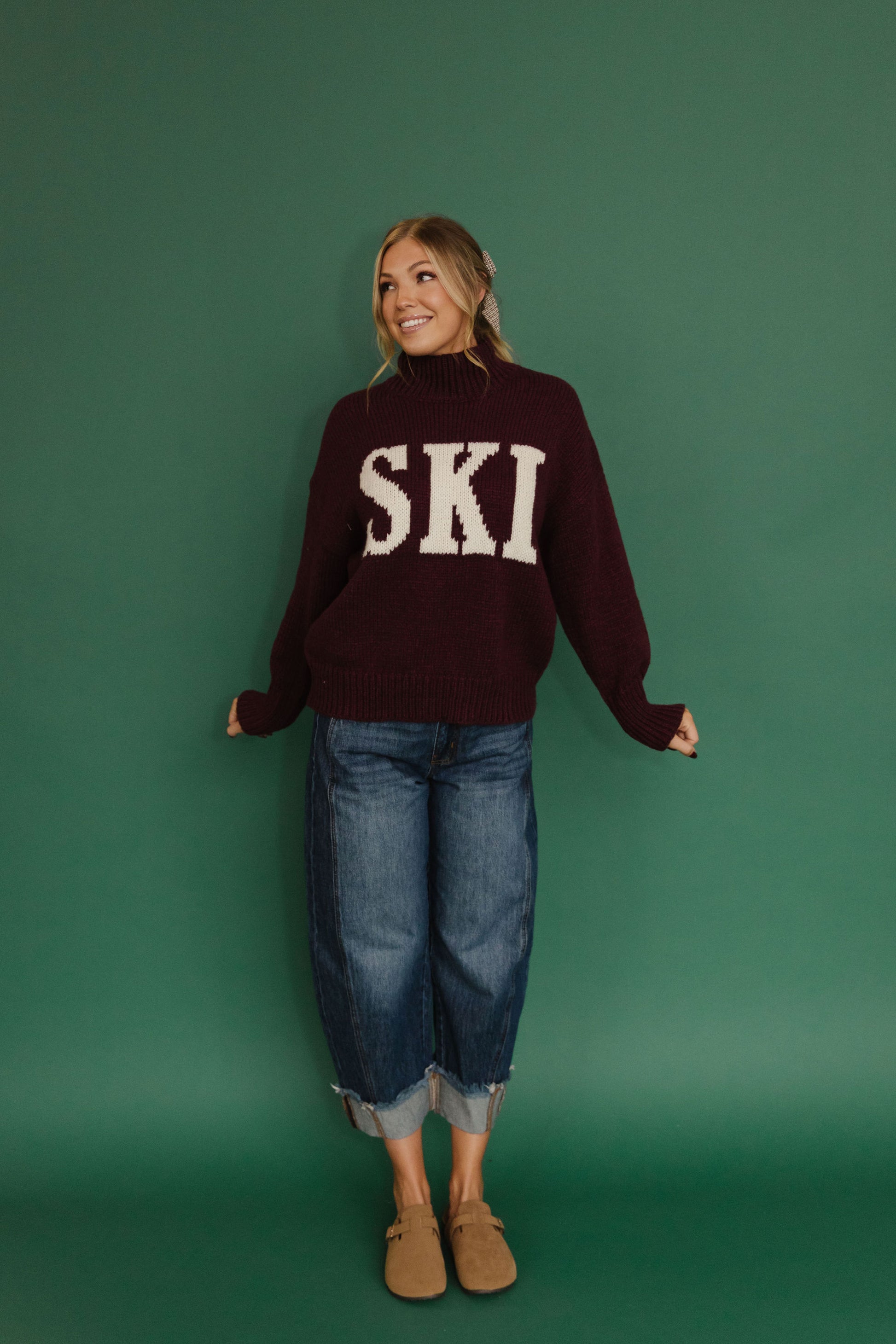 THE SKI ALL WINTER HIGH NECK SWEATER IN BURGUNDY