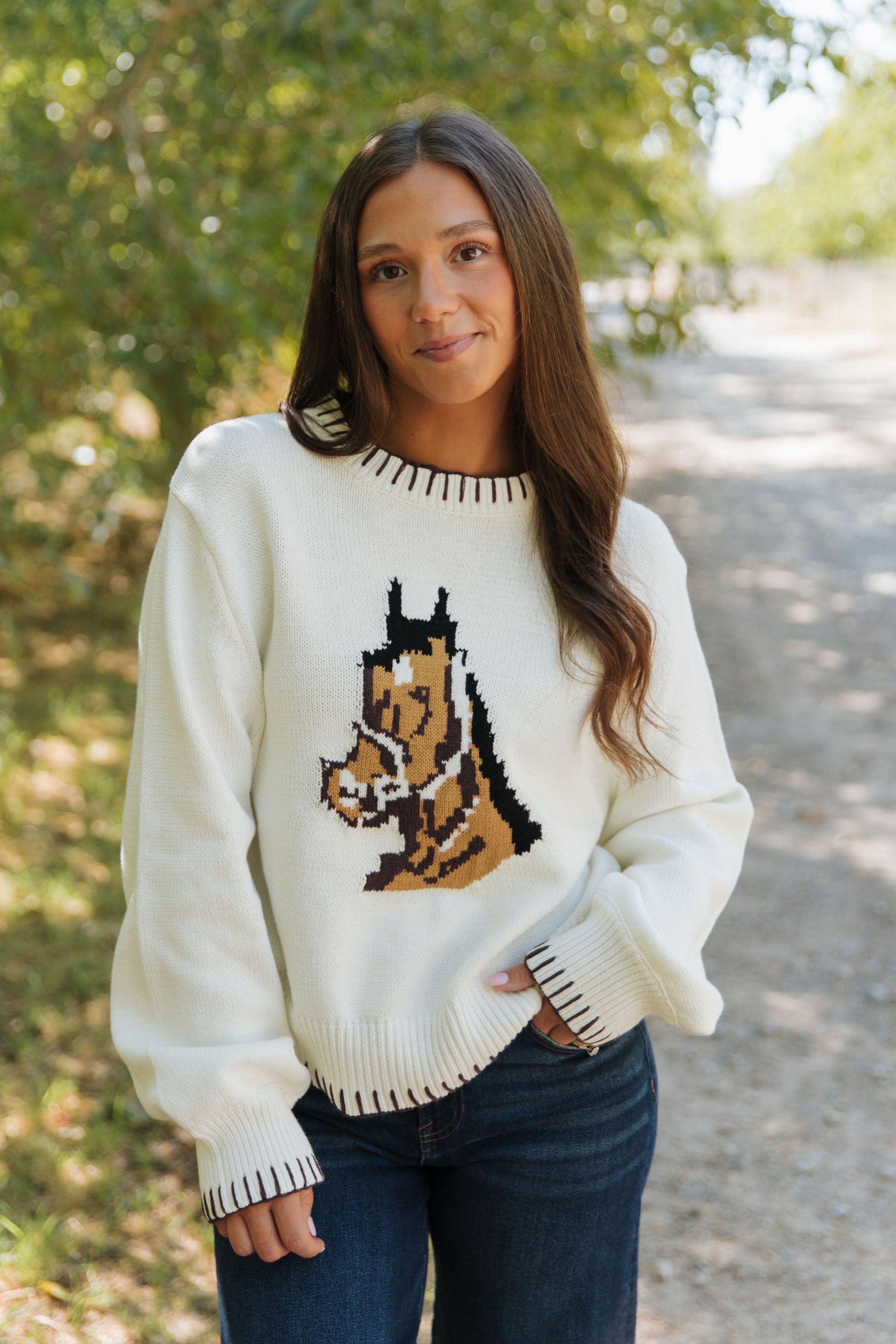 THE SOPHIA HORSE GRAPHIC SWEATER IN CREAM