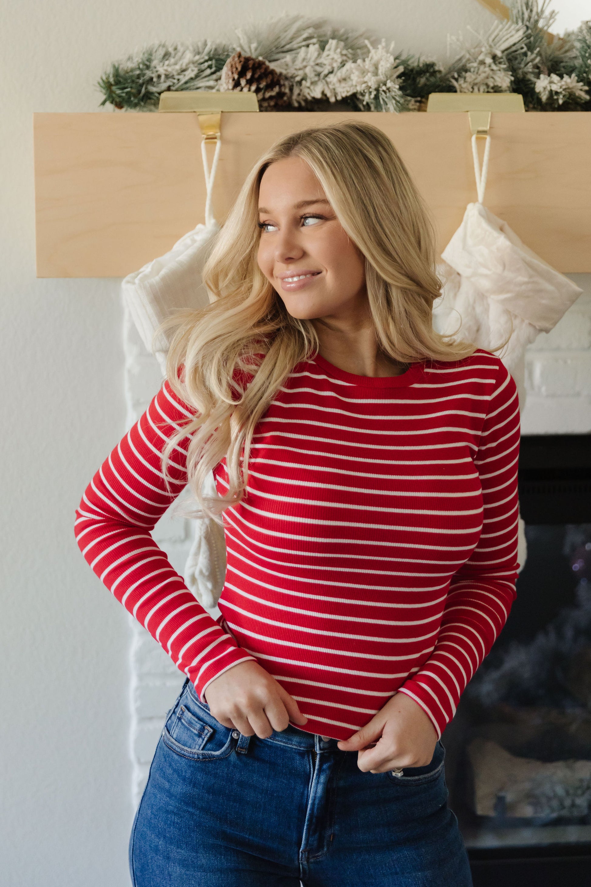 THE TRINITI STRIPED KNIT LONG SLEEVE IN RED